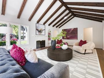 Situated on a picturesque tree-lined street, this bright and inviting home offers comfort and versatility with a 3-bedroom main residence and a thoughtfully constructed 1-bedroom ADU of nearly 500 sq. Ft. with its own address. The main home features parquet floors and a light, airy ambiance throughout its traditional floorplan, including a living room with a fireplace, a dining room that opens to the rear grounds, and a well-appointed kitchen. Three bedrooms include a primary suite. The backyard offers a large patio, lawn, and the detached ADU with its own living room, kitchen, and bedroom suite. Additional highlights include air conditioning and a garage. Moments from Stulsaft Park, walking distance to Woodside Plaza, and a short drive to downtown Redwood City, with access to acclaimed schools including Woodside High (buyer to verify eligibility)