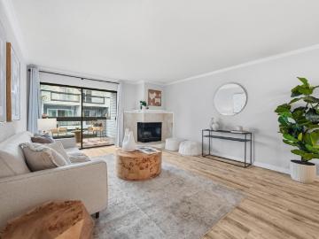 Experience refined, loft-inspired living in this exceptional 4th-floor corner residence in the heart of downtown. Surrounded by serene tree-top views, this desirable home is filled with natural light, highlighted by expansive floor-to-ceiling windows and an airy, open-concept layout. Designed for both everyday comfort and effortless entertaining, the living, dining, and kitchen spaces flow seamlessly together. Elegant hardwood floors and a well-appointed kitchen add style and functionality, creating a space that feels both sophisticated and inviting. As a corner unit, it enjoys windows on two sides, reducing shared walls with neighbors and maximizing natural light throughout the day. Whether enjoying a quiet morning at home or stepping out to explore, the location offers unmatched convenience just moments from Stanford, Caltrain, fine dining, boutique shopping, and vibrant city life. Residents enjoy a full suite of amenities, including 24-hour front desk, designated parking, fitness ce