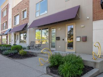 Rare opportunity to own one of downtown Columbus, Indiana's most distinctive luxury condominiums with luxury finishes. A sophisticated 4-bedroom, 3-bathroom residence in the sought-after Jackson Place community, steps from downtown restaurants, Mill Race Park, and the global Cummins headquarters. Offering nearly 2,000 square feet across multiple levels, this contemporary condo delivers an urban lifestyle with no compromise on space, storage, or style. Enjoy the open-concept main living area with rich hardwood flooring, designer lighting, and a custom floating bookcase and integrated TV that convey with the home. The chef's kitchen features granite countertops, a large center island with breakfast bar, premium stainless-steel appliances all bathed in natural light. The primary suite is a true retreat with a spa-inspired ensuite bathroom and dual walk-in closets designed for those who demand both function and luxury. Two additional bedrooms share a stylish Jack & Jill bath, and a fourth
